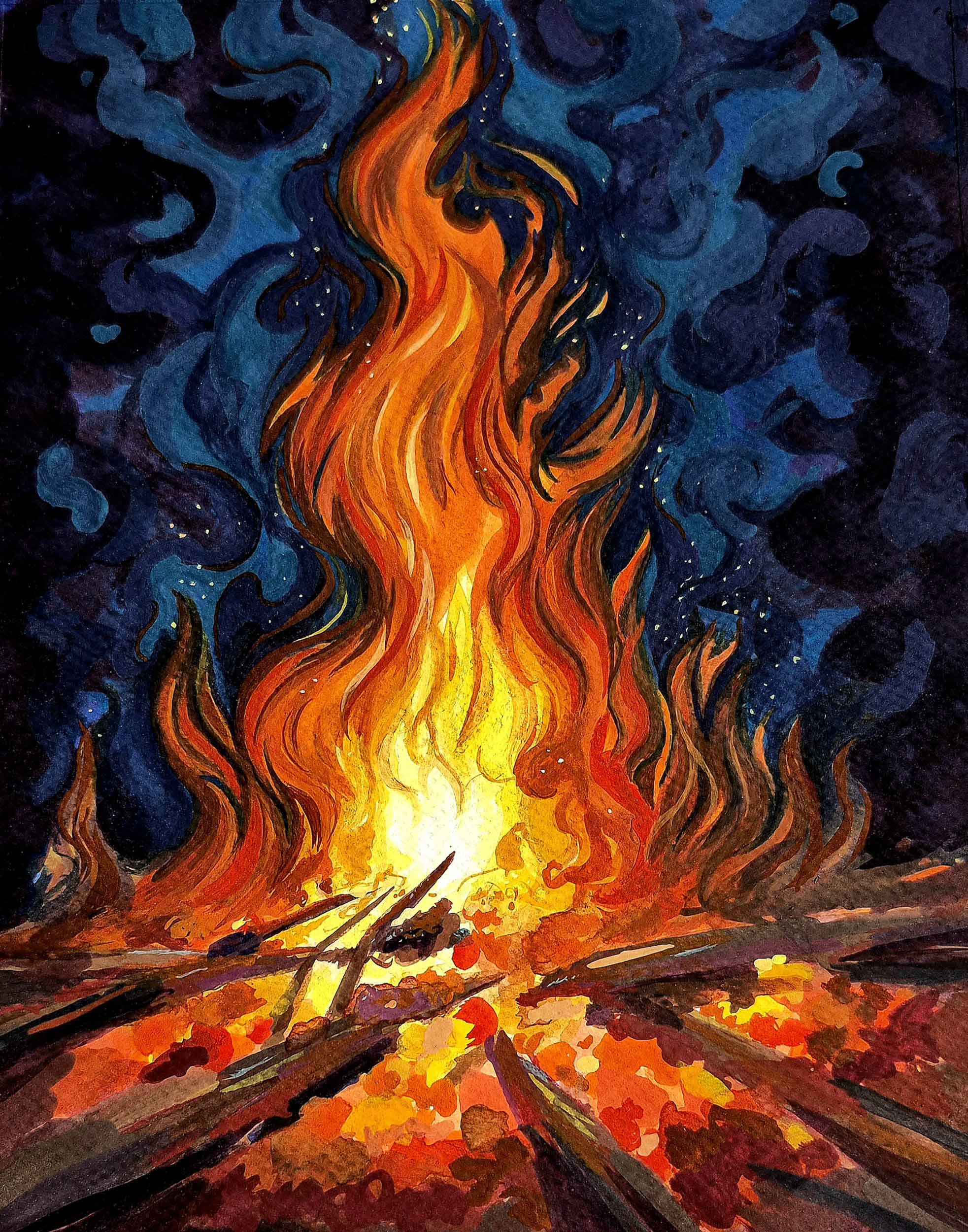 La obra busca generar una reflexión en torno a las consecuencias de la acción humana frente a la conservación y extinción de especies animales. Del mismo modo en el que un grupo de personas se reúnen en torno a una fogata bien sea para contarse historias o adquirir calor, esta serie de pinturas muestra algunas especies observando desde diferentes perspectivas el fuego, que en este caso, representa la intervención humana en la naturaleza. ¿Es el fuego algo que se propaga y destruye o algo que acobija y crea unión? Aquí los animales atestiguan con expresión de asombro cómo esta llama tiene el poder de incendiar los bosques, contaminar los océanos, deforestar y cazar especies para su consumo, colección o medicina. La llama en aparente control es reflejo de la evolución de nuestra especie frente a las otras, pero, ¿En realidad hemos evolucionado? ¿Tenemos conciencia de nuestras ventajas ante las otras especies? Aquí el fuego también puede ser el reflejo de un espíritu que no ha sabido dominarse…